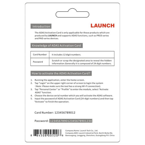 - LAUNCH ADAS Software Activation Card activates ADAS Static Calibration function for any LAUNCH X-431 Pro and PAD series scan tool enabling your diagnostic tool to perform calibration functions using any LAUNCH ADAS PRO and Mobile equipment.